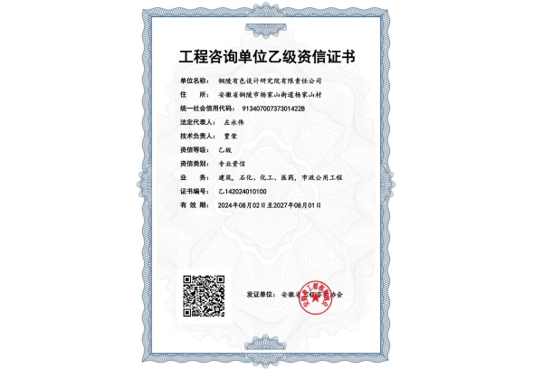 工程設(shè)計(jì)(冶金行業(yè)甲級)資質(zhì)證書